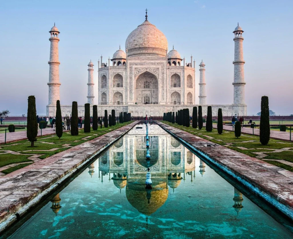 The majestic Taj Mahal, an exquisite symbol of love and architectural brilliance. Nestled in Agra, this UNESCO World Heritage Site enchants visitors with its stunning white marble facade, intricate carvings, and lush gardens. Experience the timeless beauty and rich history of one of the world’s most iconic landmarks.