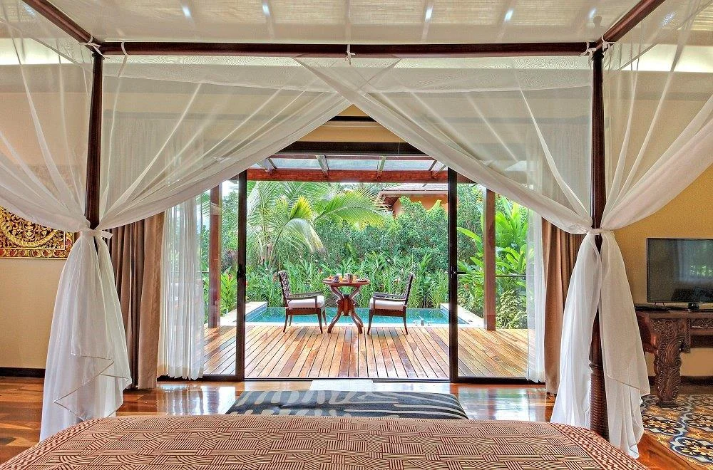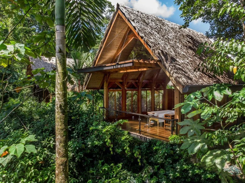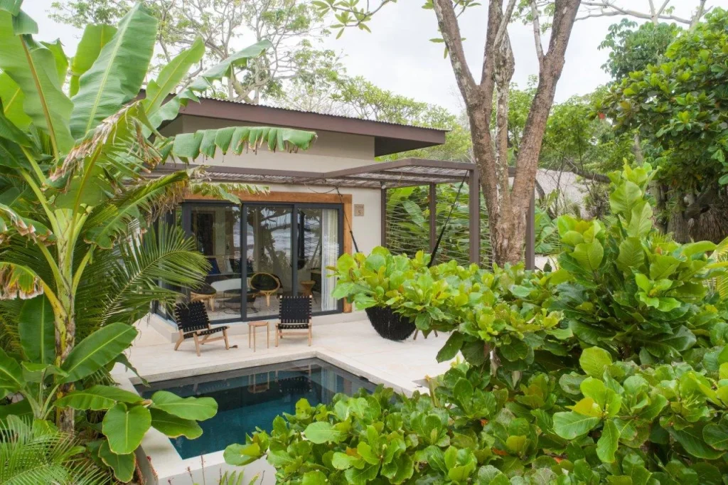 A luxury boutique hotel on the beach, surrounded by forest, offering excellent surfing, yoga classes, fine dining, diverse forest trails, and a pool. Close to shops, restaurants, and clubs. Features modern, open-design bungalows, suites, and villas with scenic views.