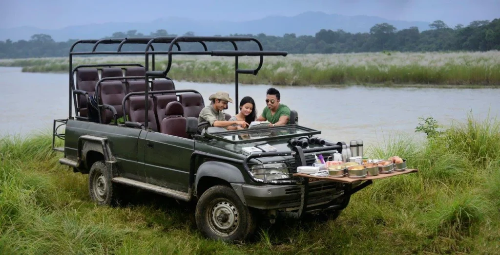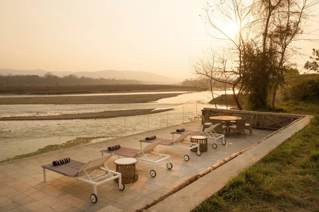 This luxurious oasis on the banks of the Rapti River, near Chitwan National Park, offers a unique jungle experience. Nature enthusiasts will enjoy elegant lodges made from natural materials with thatched roofs, thrilling safaris, a relaxing spa, a pool, and a variety of other activities.