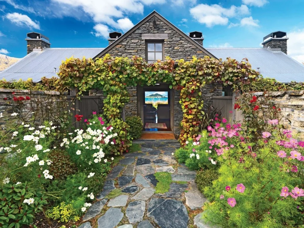 On the eastern shore of Lake Wakatipu, at the foot of the Fiordland National Park peaks and just a 40-minute drive from Queenstown, lies the boutique hotel Blanket Bay. Surrounded by pastures and alpine trees, it offers 12 rooms styled as hunting lodges, with wooden floors covered in elegant rugs and antique furnishings. Guests can enjoy a heated pool, a treatment spa, and numerous outdoor activities, including canoeing on the lake and cycling trails.