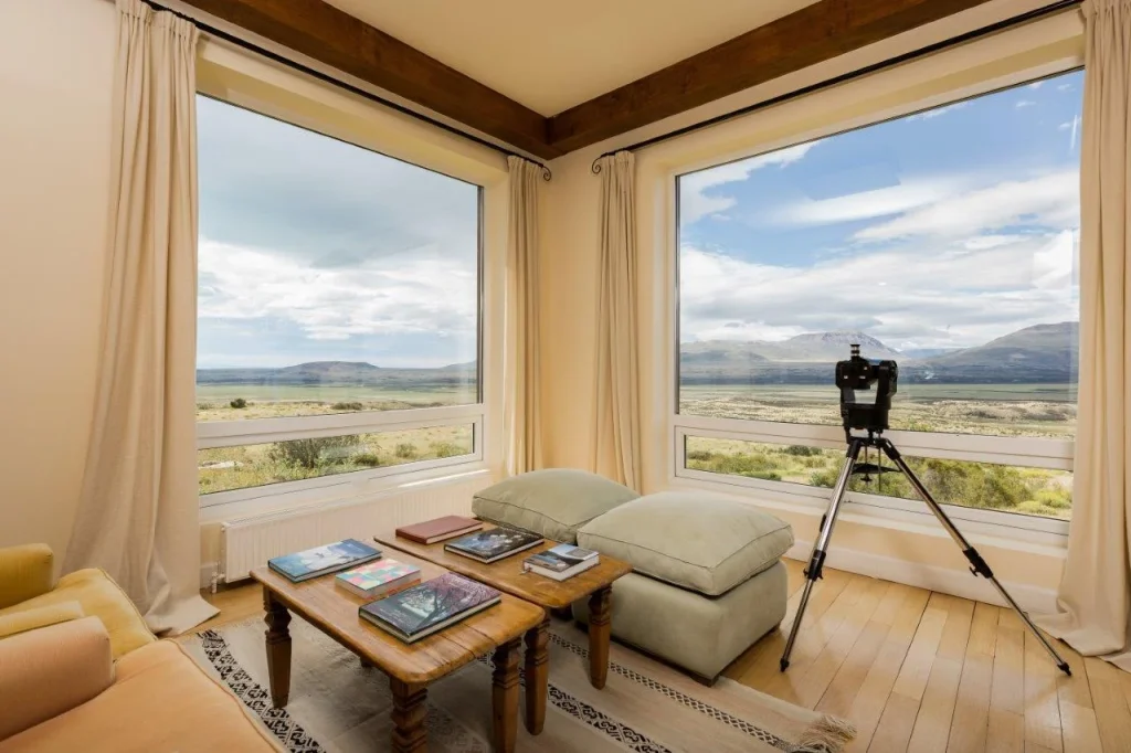 Set among the stunning landscapes of Argentine Patagonia near El Chaltén, this exclusive hotel offers spacious rooms and suites with clean, modern designs. It features a pampering spa and an Argentine kitchen serving gourmet dishes made from local ingredients. Guests can enjoy various activities, including horseback riding, birdwatching, and biking across wide plains with Lake Argentino and the distant Andes as a backdrop.